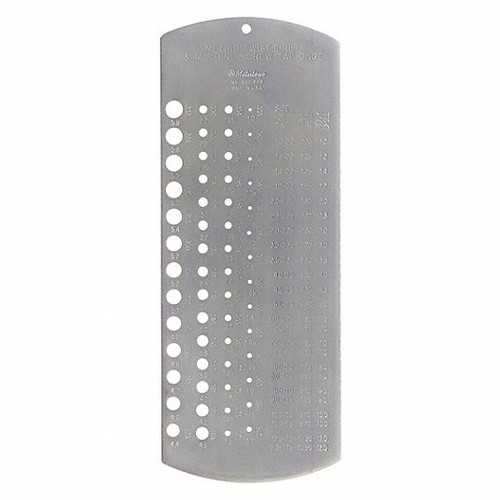 | Feature | <b>Price For:</b> Each <b>Measuring Range (In./mm)</b>: 1.0 to 5.9mm <b>Item</b>: Drill Gage, Metric <b>Graduations</b>: Drill Size 1.0-5.9mm; 57 holes <b>Length (In.)</b>: 6 3/8 <b>Material</b>: Hardened steel <b>Finish</b>: Satin <b>Measuring Range (In.)</b>: 1.0 to 5.9mm <b>Country of Origin (subject to change)</b>: United States |