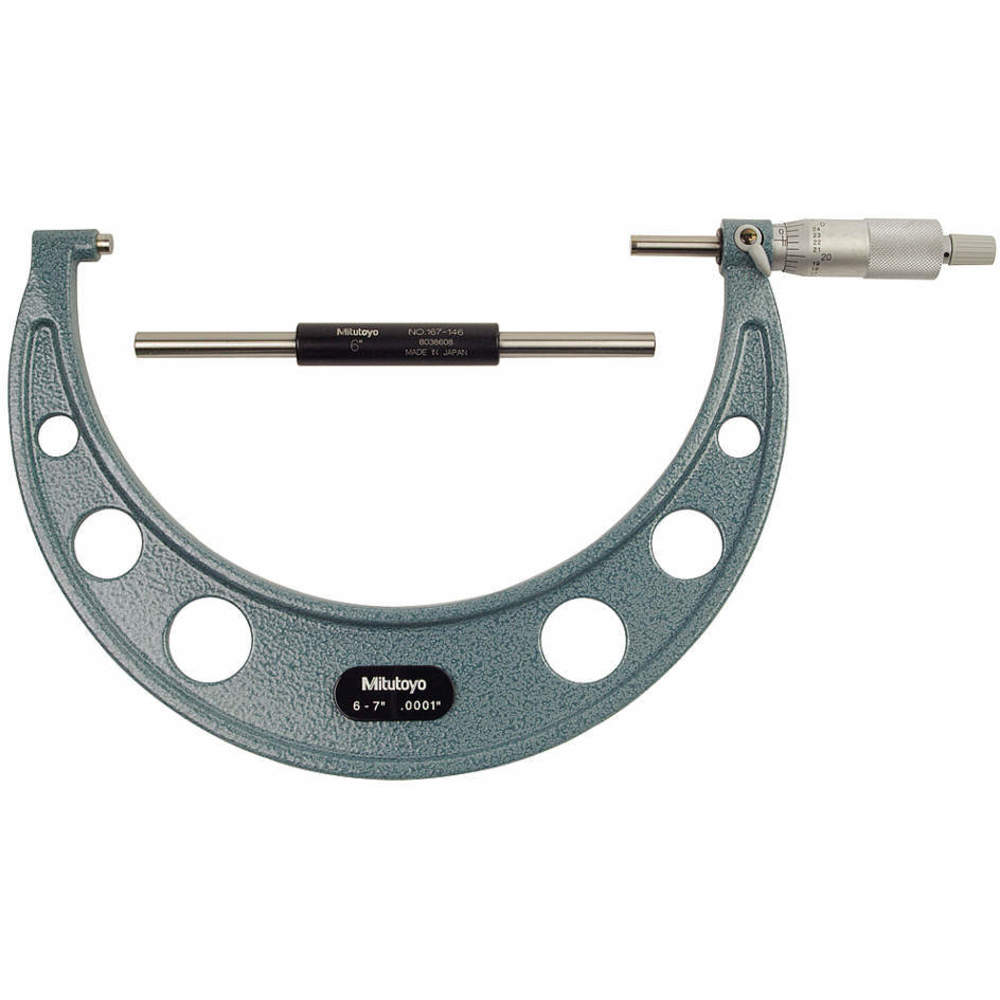 Mitutoyo 103-221 Outside Micrometer, Baked-enamel Finish, Ratchet Stop, 6-7" Range, 0.0001" Graduation, +/-0.0002" Accuracy