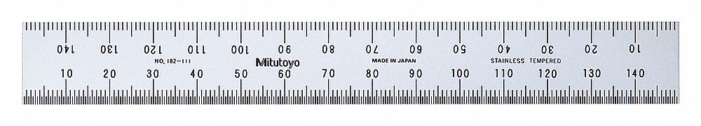 Mitutoyo 182-111, Steel Rule, 150mm, (1mm, 1/2mm), 1.2mm Thick X 19mm Wide, Satin Chrome Finish Tempered Stainless Steel
