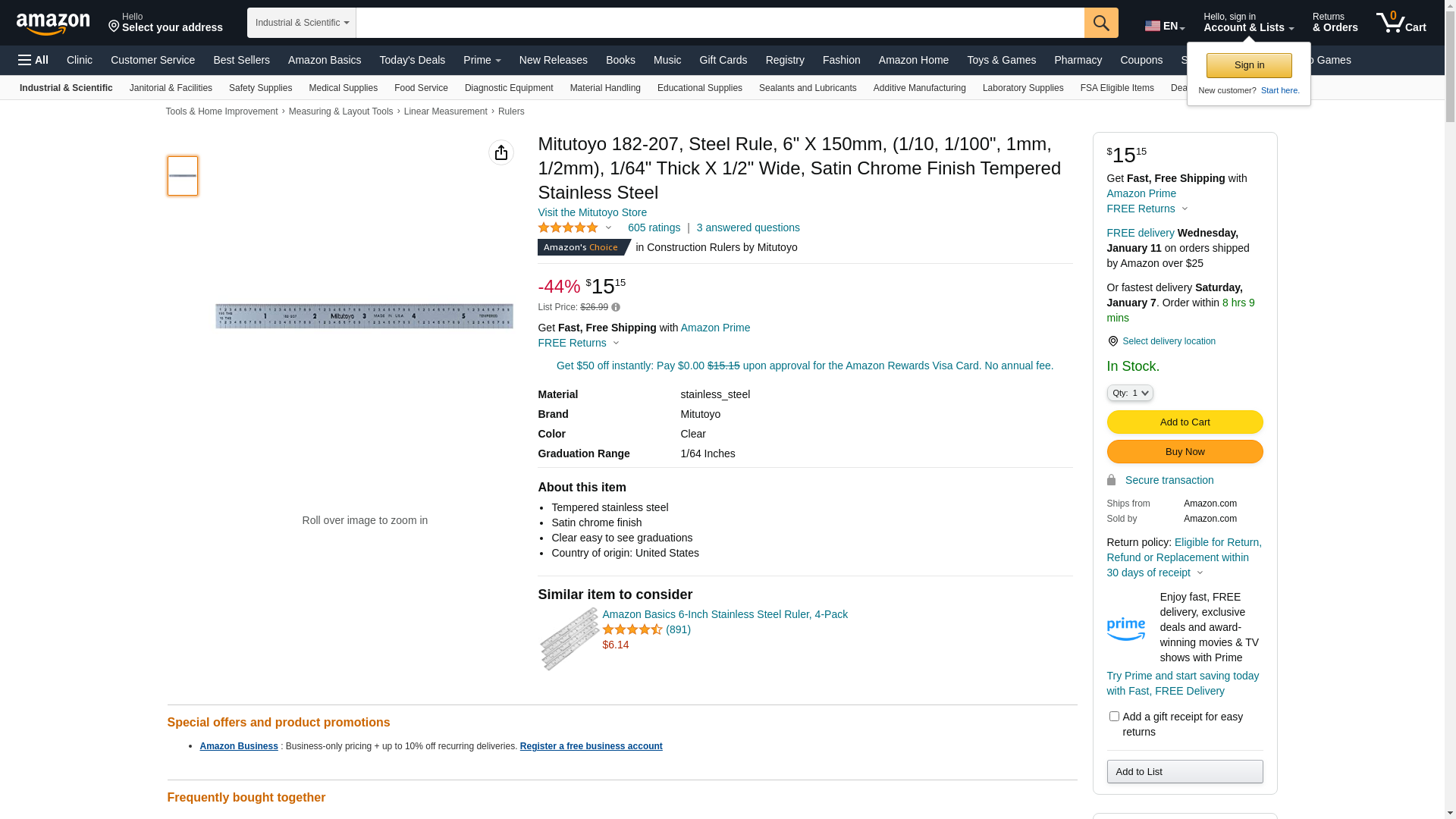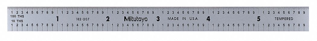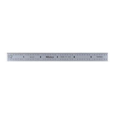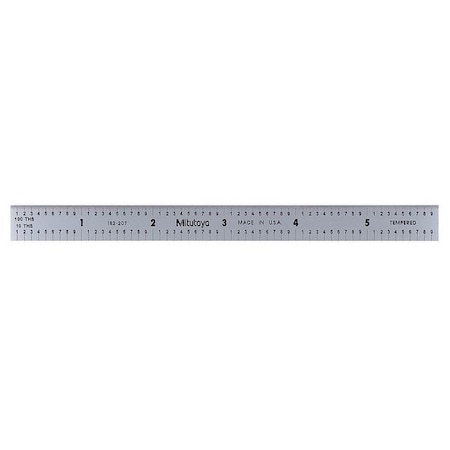 Mitutoyo 182-207, Steel Rule, 6" X 150mm, (1/10, 1/100", 1mm, 1/2mm), 1/64" Thick X 1/2" Wide, Satin Chrome Finish Tempered Stainless Steel
