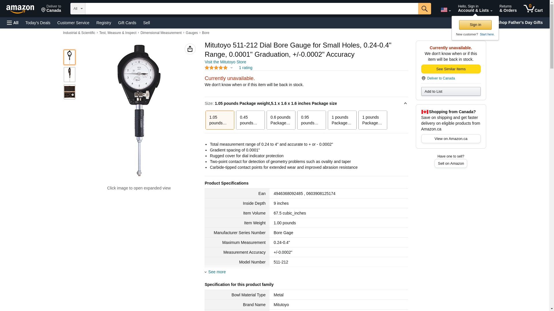 Mitutoyo 511-212 Dial Bore Gauge for Small Holes, 0.24-0.4" Range, 0.0001" Graduation, +/-0.0002" Accuracy