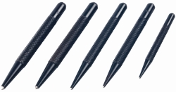 | Feature | Price For: Each Item: Center Punch Set Length: 3 and 4" Finish: Black Oxide Point: Steel Includes: Sizes 1/16 to 5/32", Pouch Number of Pieces: 5 Blow Force: - Replaceable Point: - Adjustable: - Country of Origin (subject to change): India |