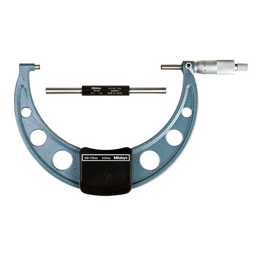 Mitutoyo 103-143-10 Outside Micrometer, Baked-enamel Finish, Ratchet Stop, 150-175mm Range, 0.01mm Graduation, +/-0.004mm Accuracy