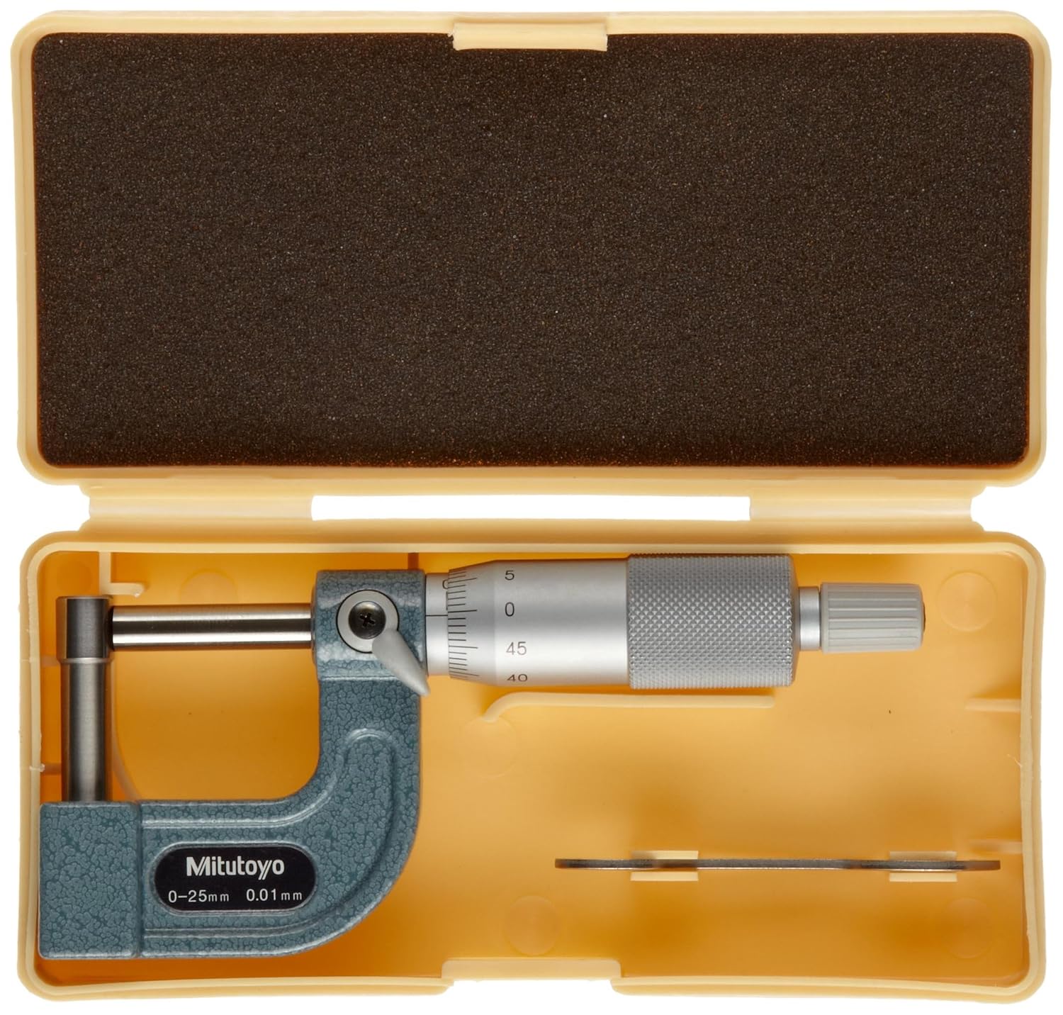 Mitutoyo 115-315 Tube Micrometer, Cylindrical Anvil, Ratchet Stop, 0-25mm Range, 0.01mm Graduation, +/-0.003mm Accuracy, 4.8mm Dia. Spherical Tip