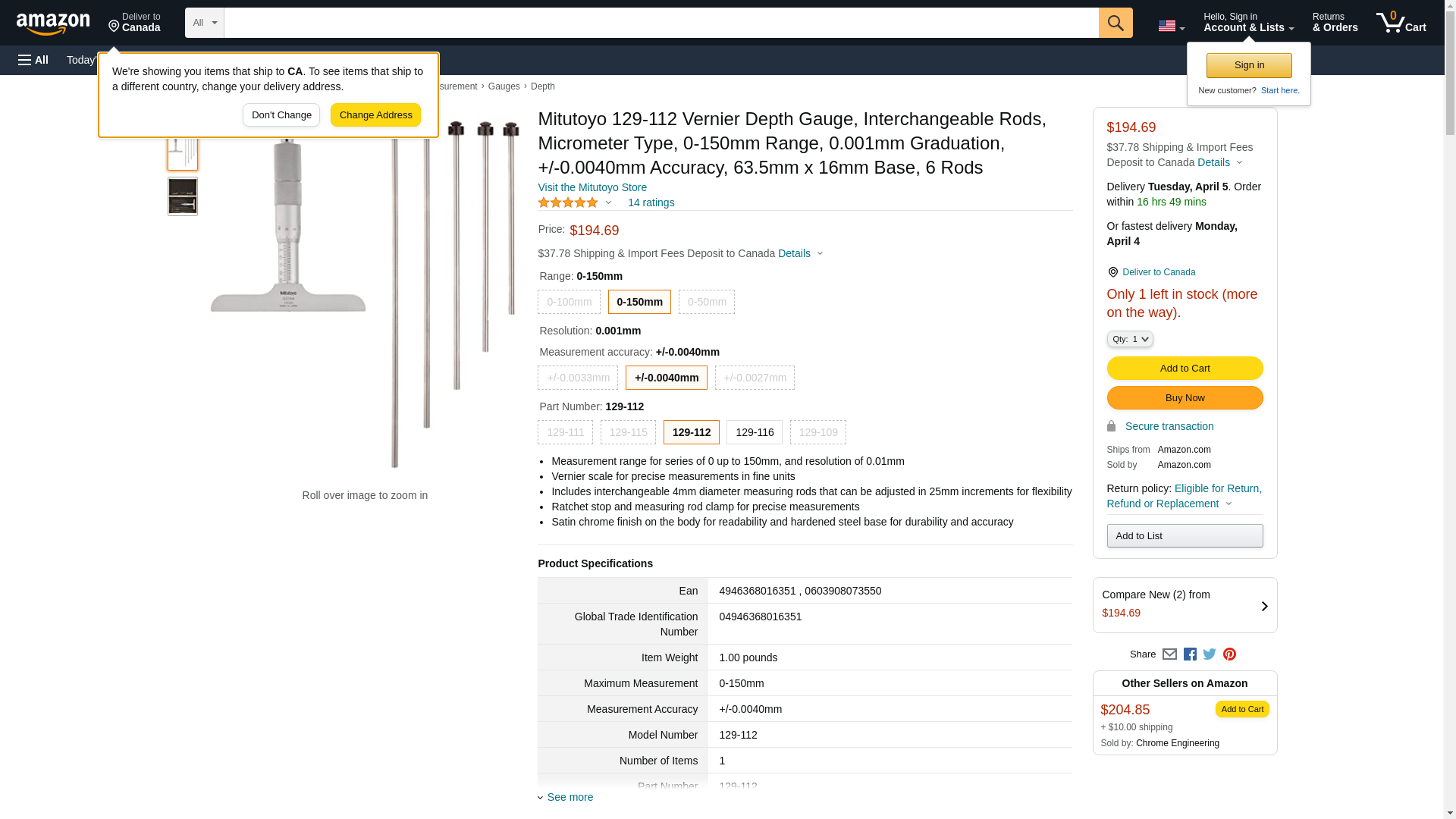 | Guardian | MITUTOYO129-112 | 1 | -2 | 1 | 1 @ $257.00 |