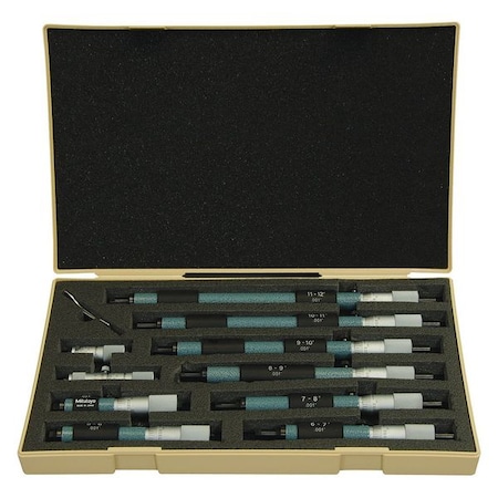 Mitutoyo 133-904 Tubular Vernier Inside Micrometer, 2-12" Range, 0.001" Graduation, +/-0.0003" Accuracy (10 Piece Set)
