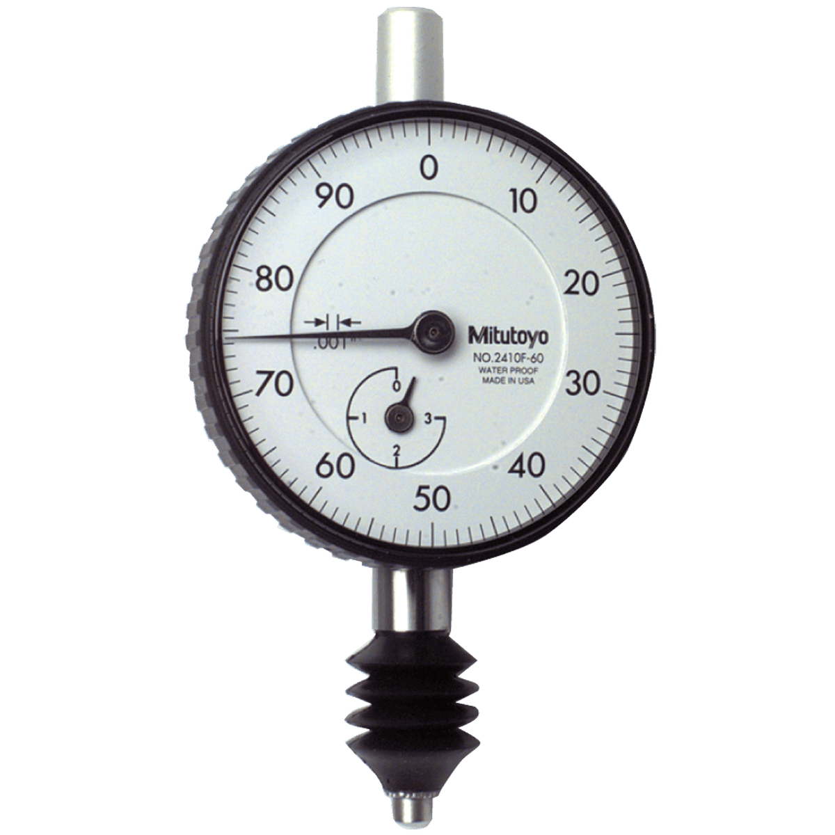 - Standard dial indicator with a 0.375" diameter stem, a #4-48 UNF contact point thread mount, and choice of white or black face, for measuring surface variations in fractional inches