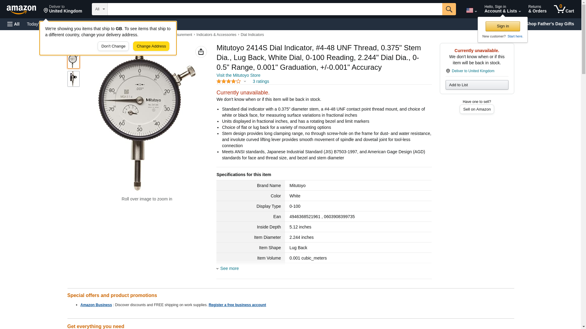 | Feature | Standard dial indicator with a 0.375" diameter stem, a #4-48 UNF contact point thread mount, and choice of white or black face, for measuring surface variations in fractional inches |