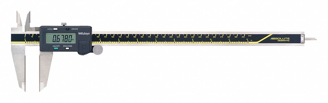 Mitutoyo ABSOLUTE 500-168 Digital Caliper, Stainless Steel, Battery Powered, Inch/Metric, 0-12" Range, +/-0.0015" Accuracy, 0.0005" Resolution