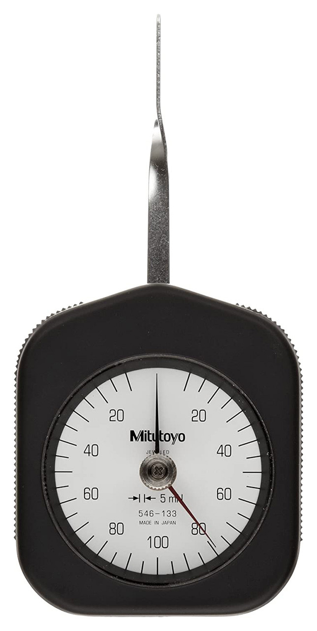 Mitutoyo 546-133 Peak Hold Dial Tension Gauge, 5mN Graduation, 10-100mN Range