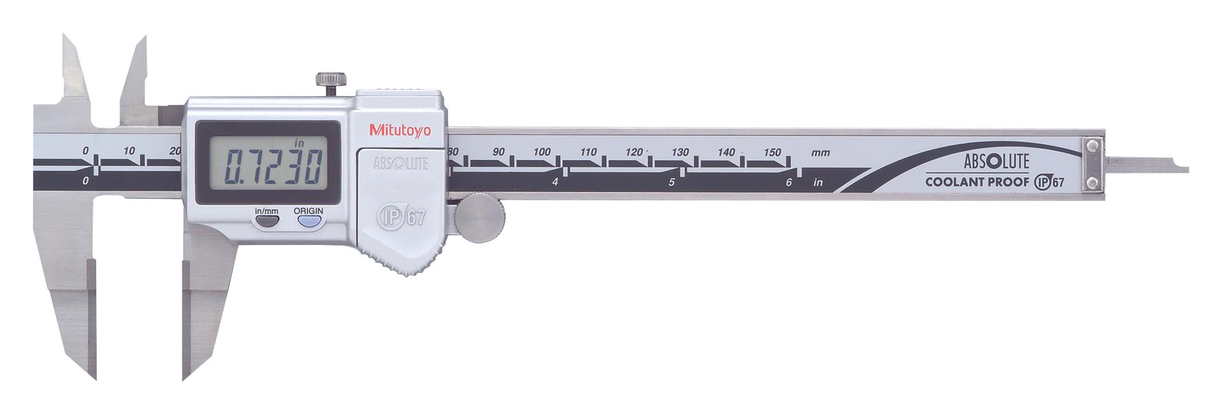 Mitutoyo ABSOLUTE 573-734 Digital Caliper, Stainless Steel, Battery Powered, Inch/Metric, 0-6" Range, +/-0.001" Accuracy, 0.0005" Resolution, Meets IP67 Specifications