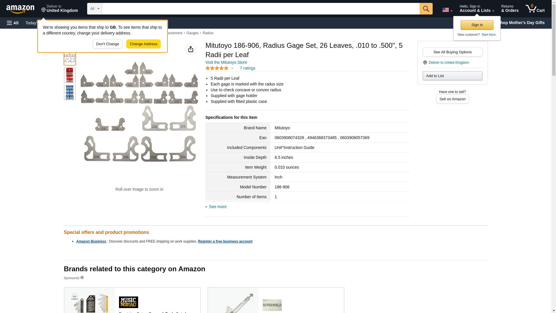 Mitutoyo Radius Gauges (26 Leaves) Rohs Compliant: Na - 186-906