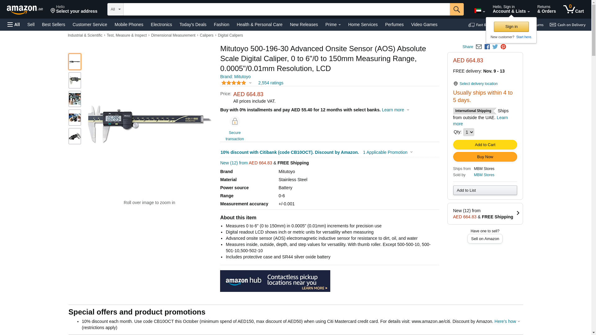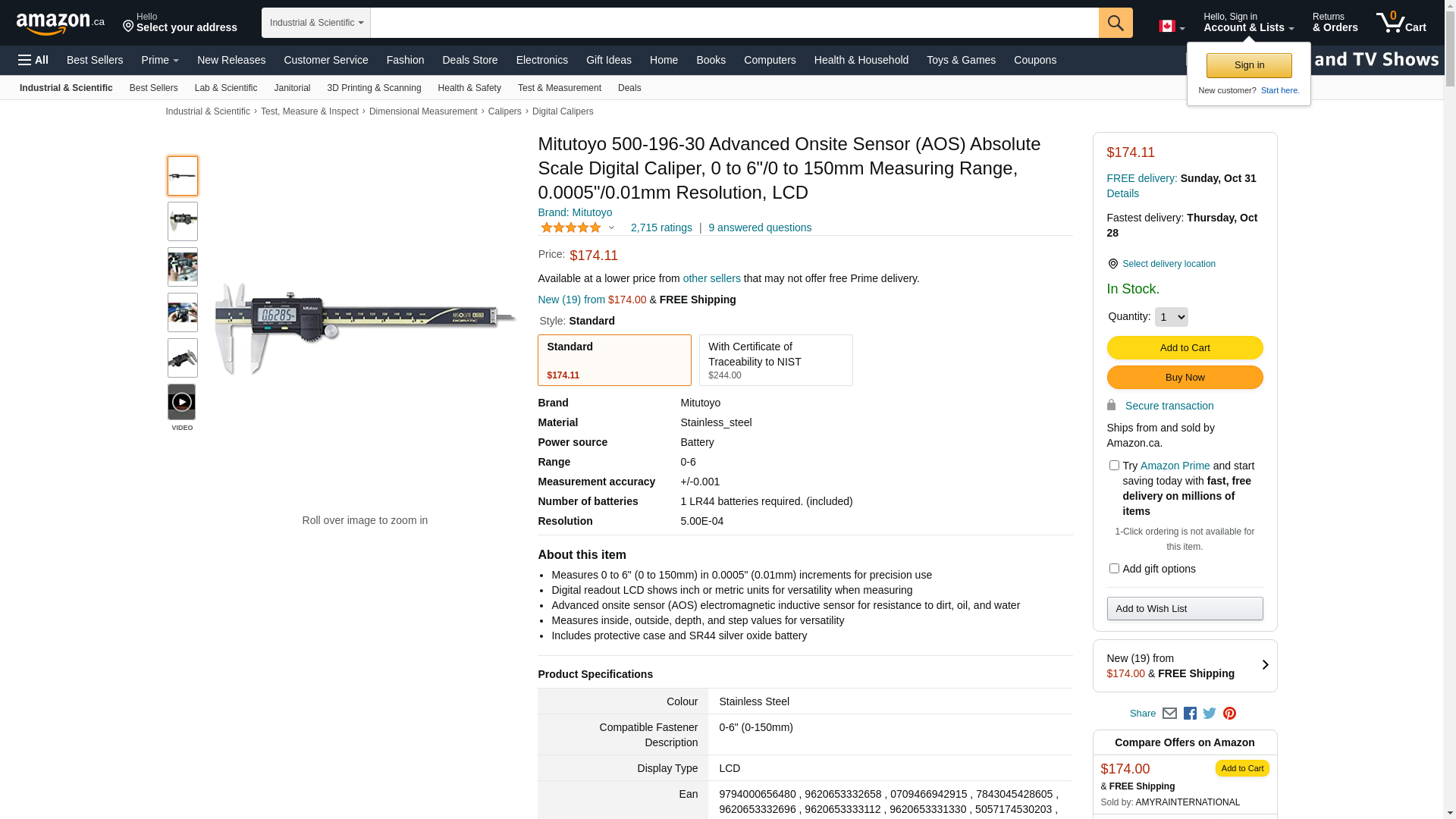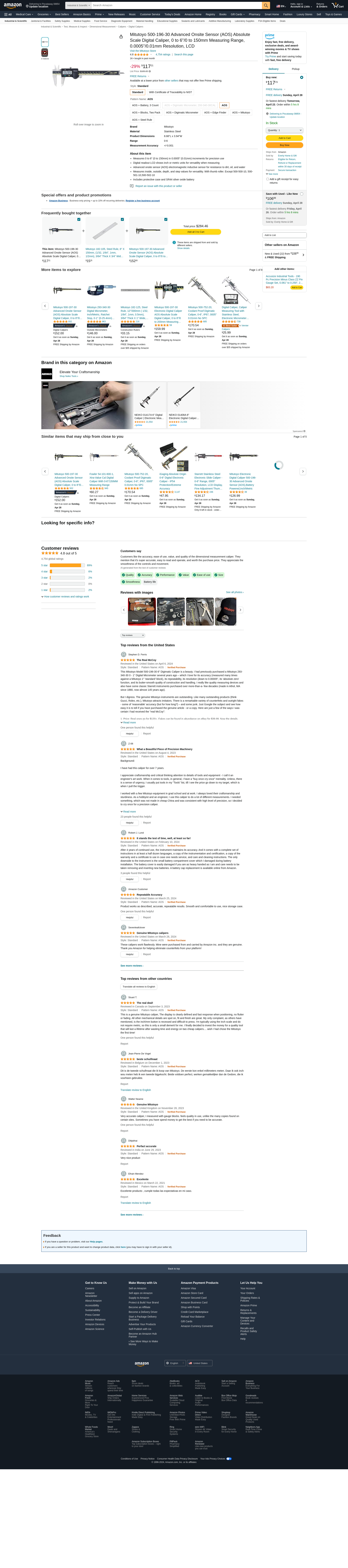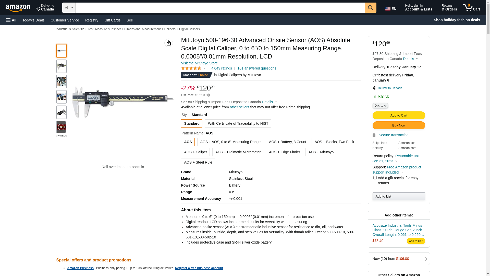 Mitutoyo Electronic Digital Caliper 500-196-30 Advanced Onsite Sensor (AOS),Battery Powered,Inch/Metric