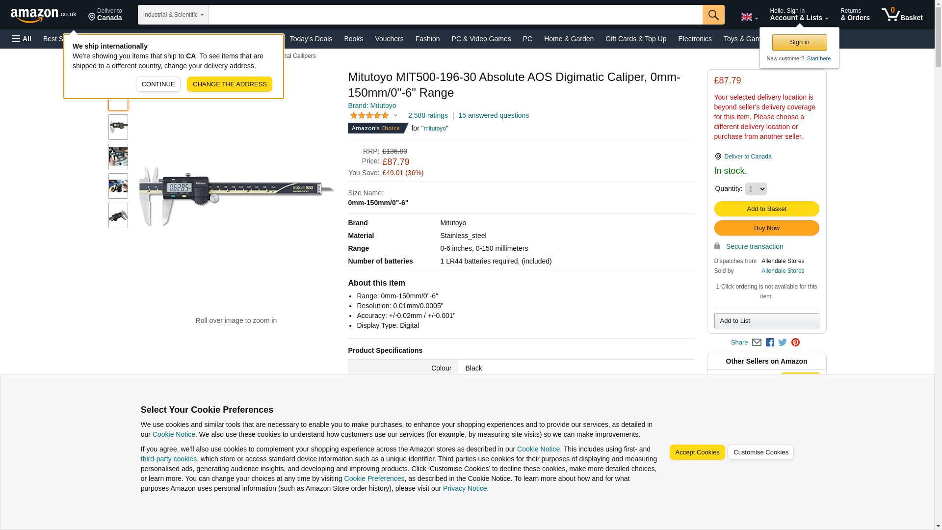 Mitutoyo America 500-196-30 Digimatic Caliper Without Output, 6" Rang, 1" Height, 1" Wide, 1" Length, Borosilicate Glass