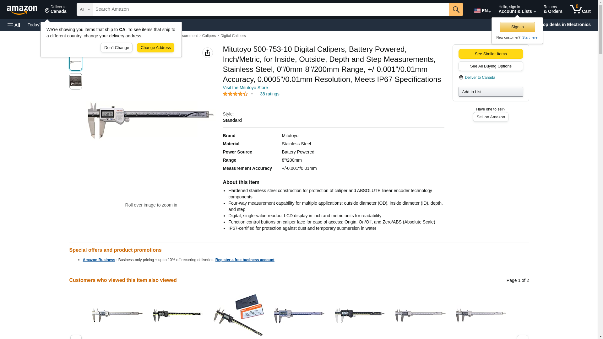 Mitutoyo 500-753-10 Electronic Digital Caliper, 8 inch/200mm. Inside Jaw Depth - 0.79 inches; Body Material - Stainless Steel; Outside Jaw Depth - 2 inches; Display Type - Digital LCD; Accuracy -