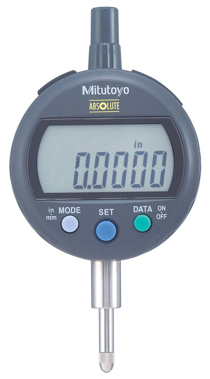 Mitutoyo 543-402B Absolute Digimatic Indicator, ID-C Standard Type, #4-48 UNF Thread, 3/8" Stem Dia., Flat Back, 0-0.5" (0-12.7mm) Range, 0.0005" (0.01mm) Resolution, +/-0.001" Accuracy, Meets IP42 Specifications