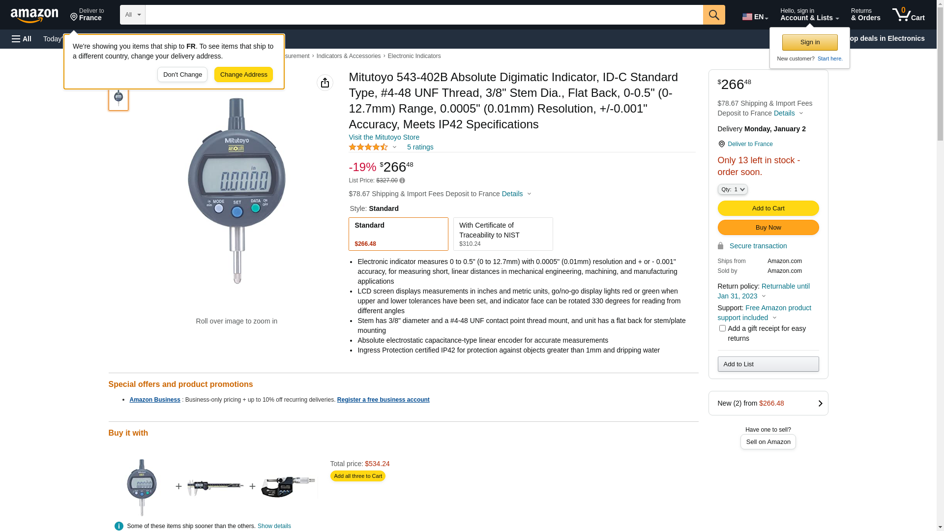 Mitutoyo Indicator, Digital, 0.5"/12.7mm - 543-402B