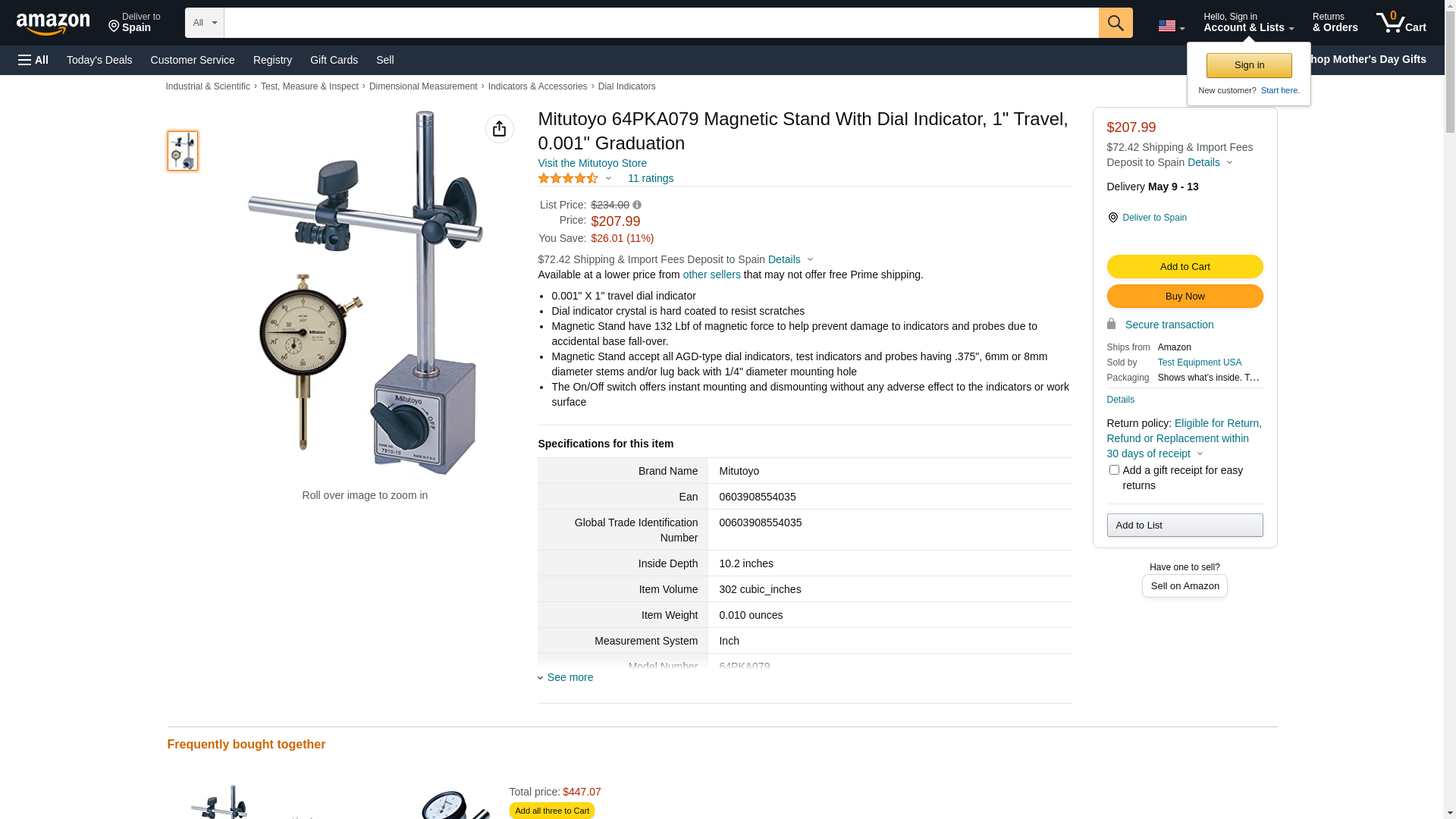 Mitutoyo 64PKA079 Magnetic Stand With Dial Indicator, 1" Travel, 0.001" Graduation