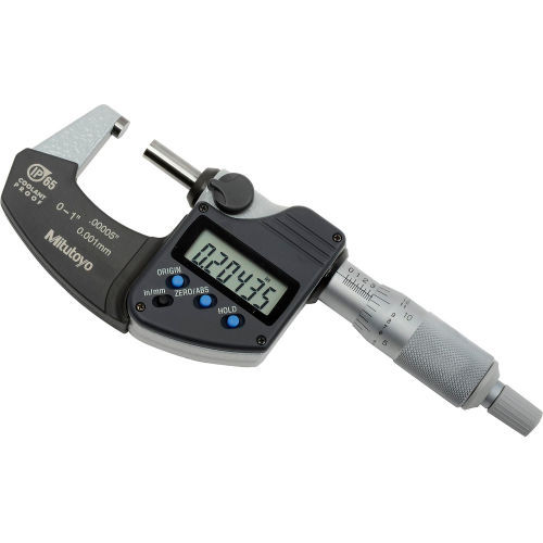 <b>Mitutoyo 293-340-30 Digimatic 0 - 1" X .00005"/0.001mm IP65 Digimatic Outside Micrometer, No SPC Output, Ratchet</b><Br><Br><ul style="margin-top:0px; padding-top: 5px; padding-bottom: 5px;"><LI>IP65 Waterproof rated</LI><LI>Auto On/Off</LI><LI>Ratchet stop</LI><LI>Carbide measuring faces</LI><LI>Supplied in fitted plastic case</LI><LI>Includes Certificate of Calibration</LI></UL>