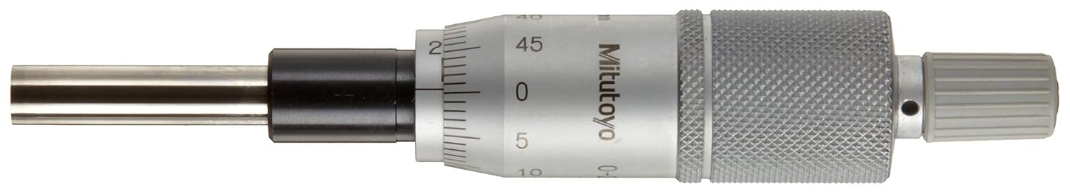 Mitutoyo 150-190 Micrometer Head, Middle Size, 0-25mm Range, 0.001mm Graduation, +/-0.002mm Accuracy, Ratchet Stop Thimble, Flat Face, Vernier (0.001mm / .0001")