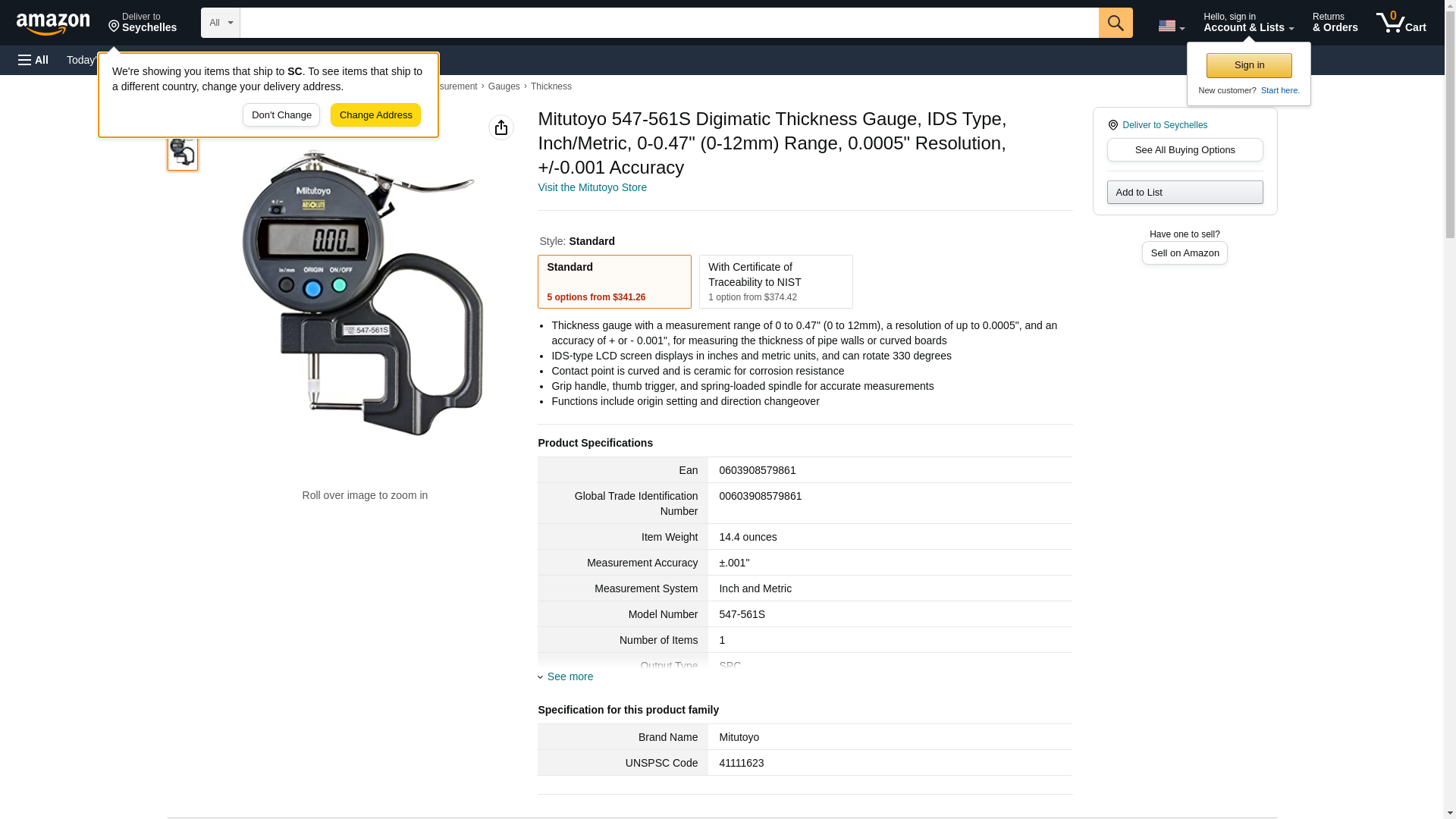 Mitutoyo 547-561S Digimatic Thickness Gauge, IDS Type, Inch/Metric, 0-0.47" (0-12mm) Range, 0.0005" Resolution, +/-0.001 Accuracy