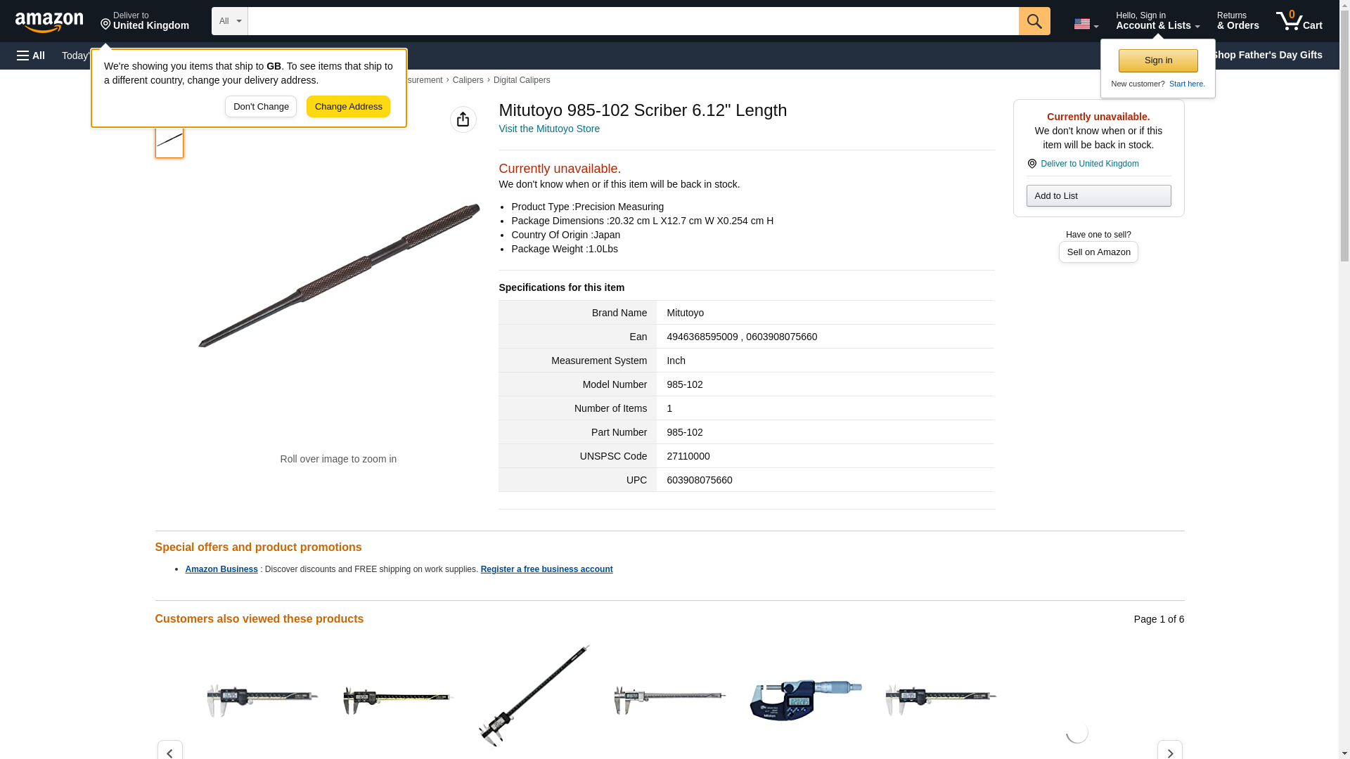 Mitutoyo 985-102 6-1/8 in Straight Scriber