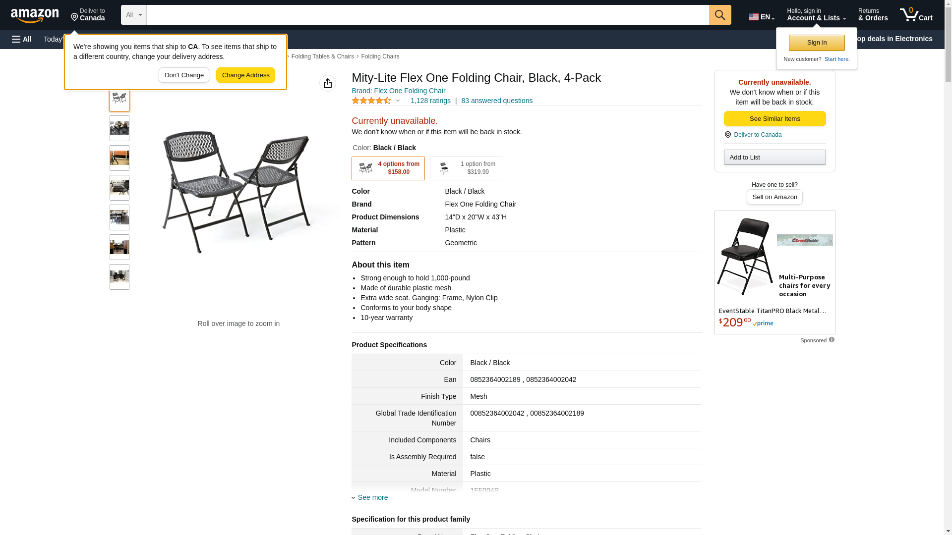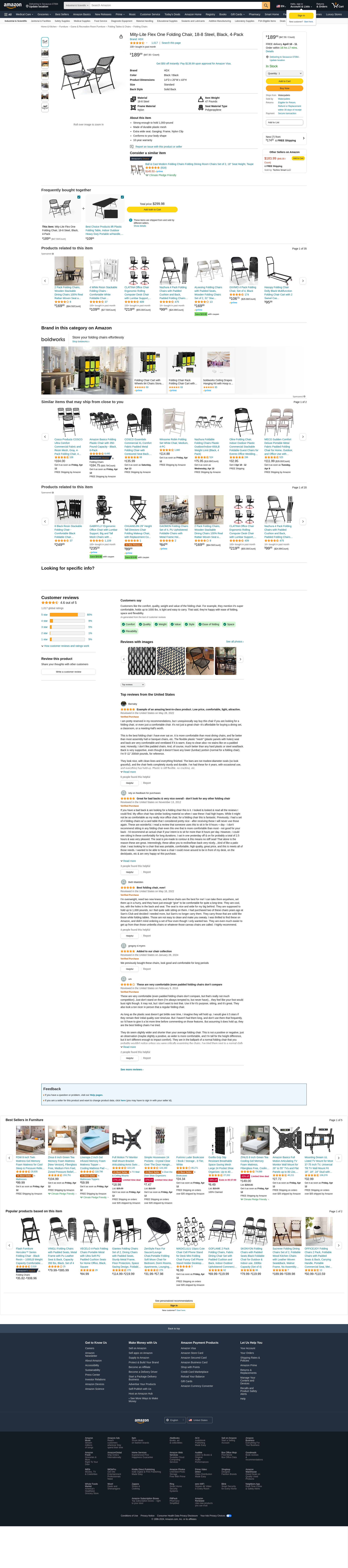 Mity-Lite Flex One Folding Chair, Black, 4-Pack