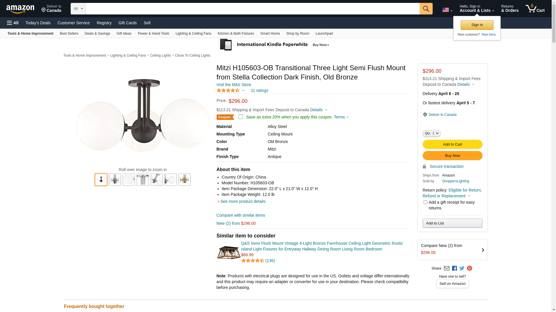 ![]() beeslighting.com | H105603-OB | 1 | 1 | 1 @ $320.00 | |