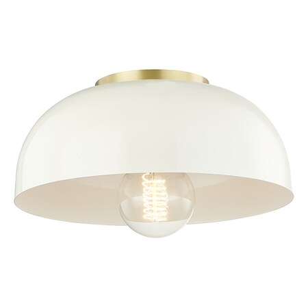Mitzi H199501S-AGB/CR Contemporary Modern One Light Semi Flush Mount from Avery Collection Antique Finish, Aged Brass/Cream