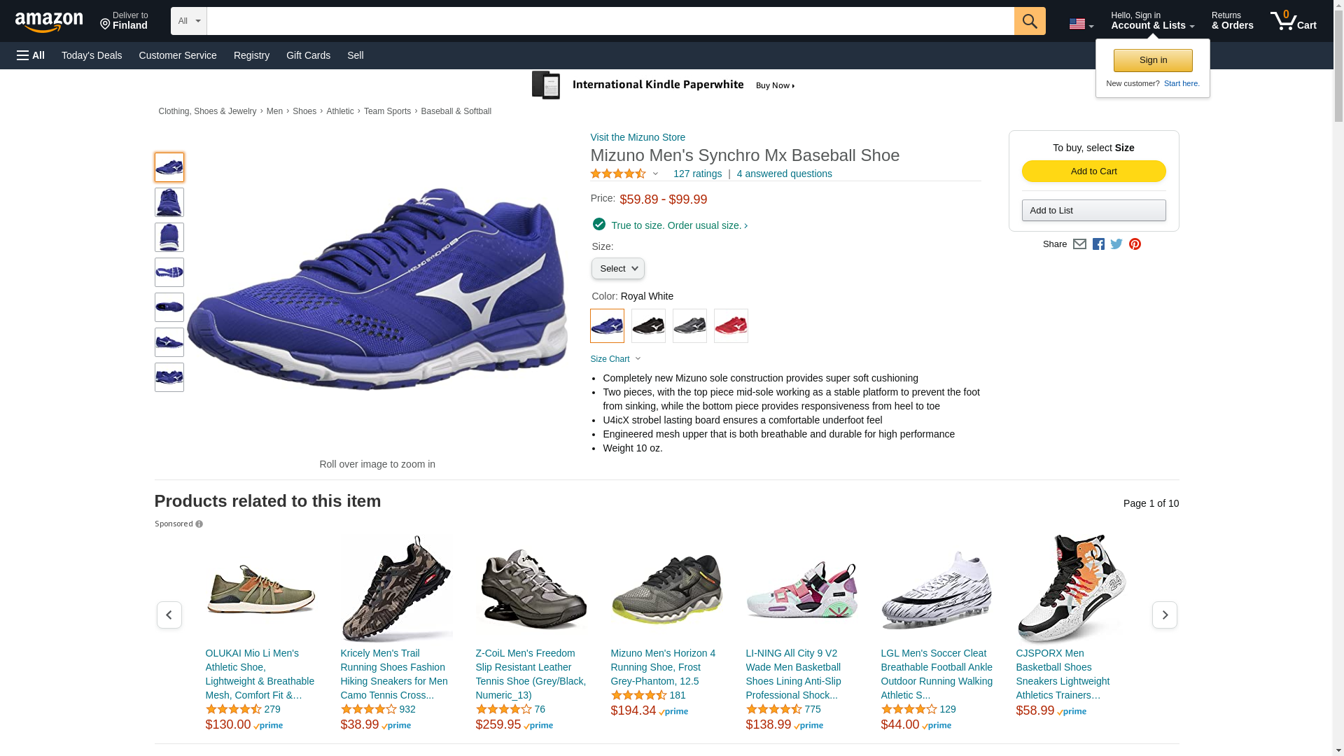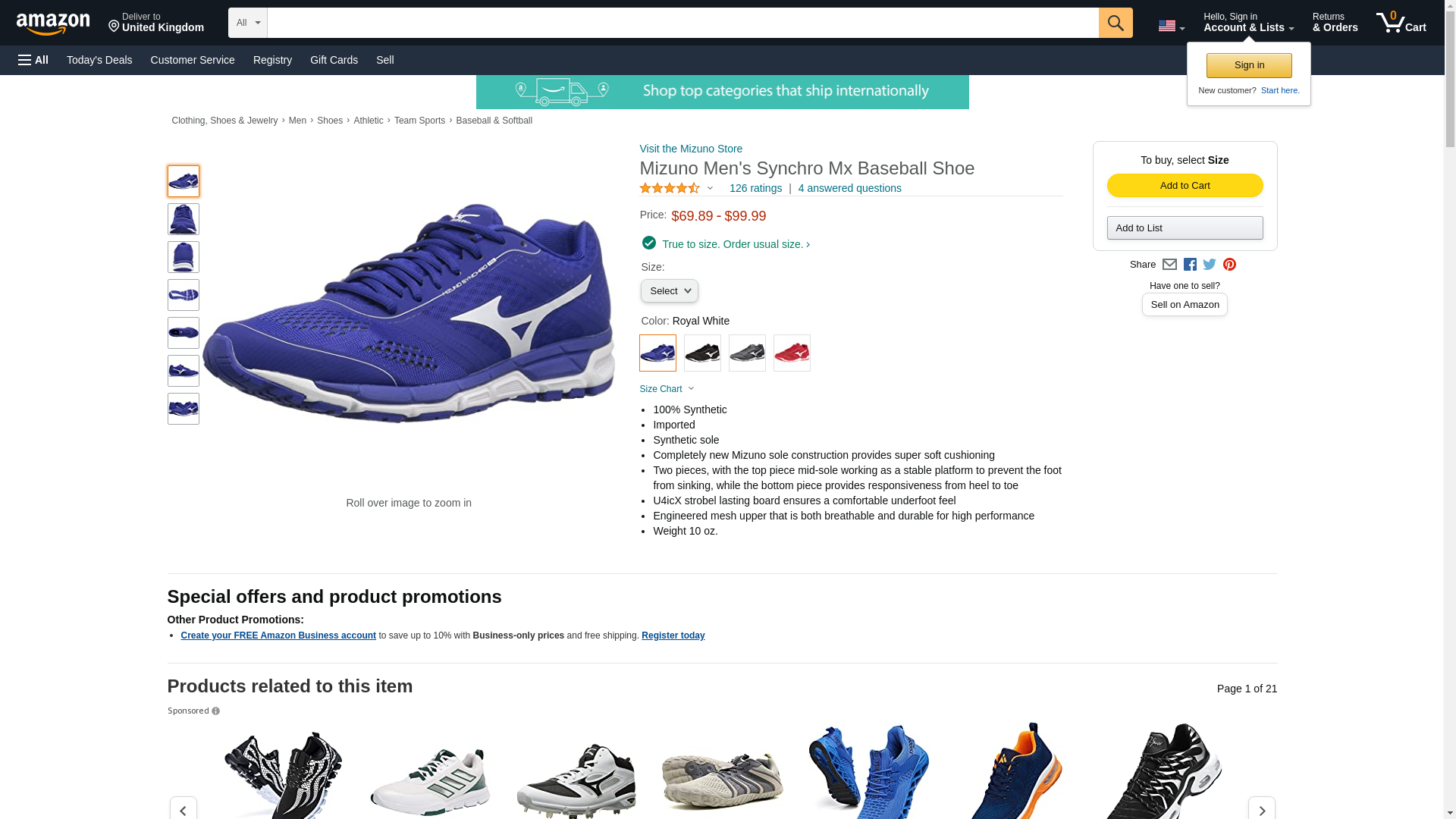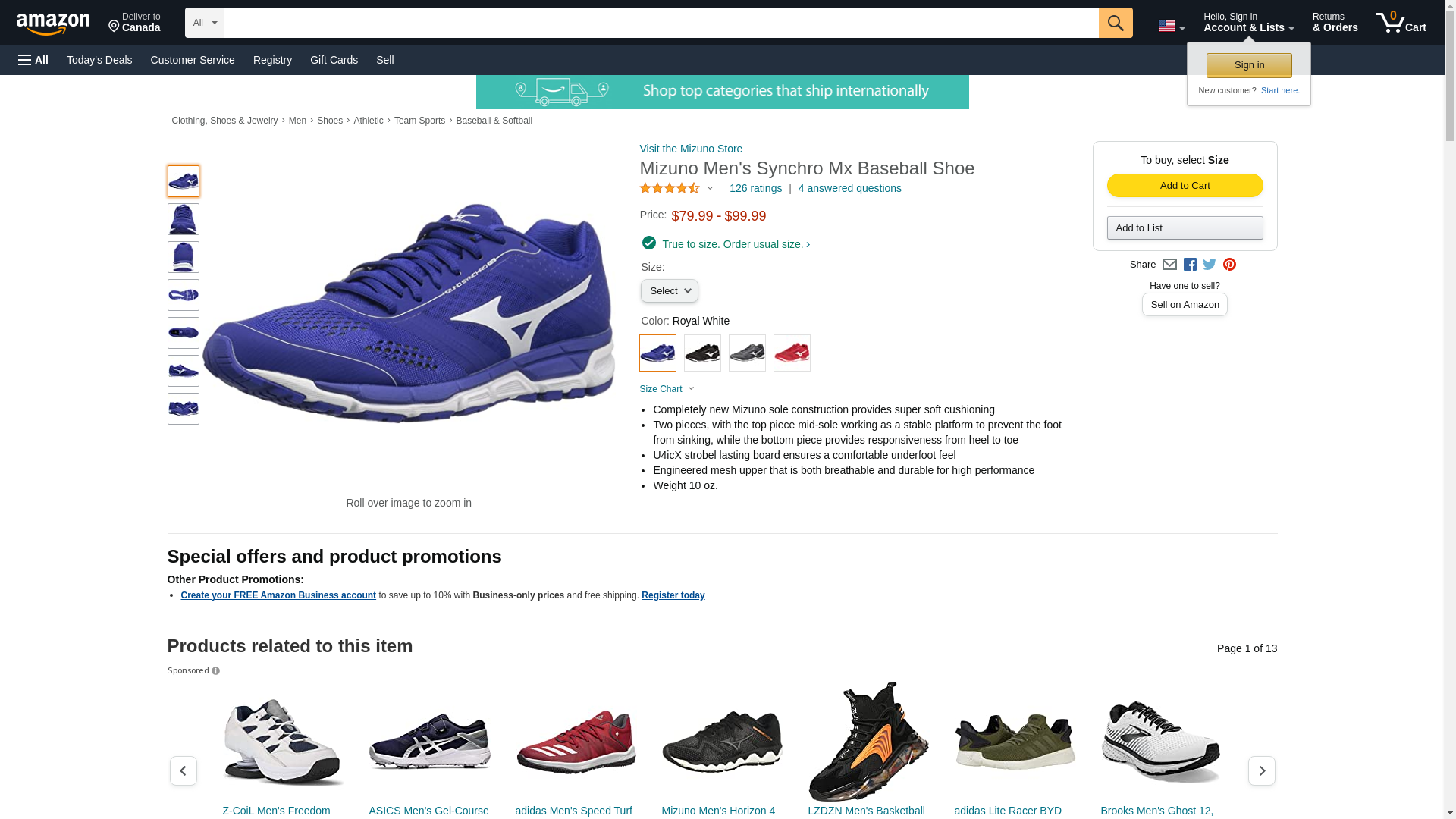 Mizuno Men's Synchro mx Baseball Shoe, Royal White, 9 D US