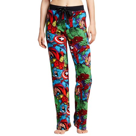 <ul> <li>Marvel Avengers Juniors plush fleece pajama pants</li> <li>Featuring The Avengers Captain America, The Hulk, Thor, Spider-man and Iron Man all-over print on front and back. </li> <li>Black drawstring tie on elastic waist band. No pockets.</li> <li>Ultra soft and comfortable. 100% polyester</li> <li>Plush, thick fleece material for incredibly soft feel.</li> <li>Officially Licensed Marvel merchandise!</li> <li>Junior sizing, Runs small.</li> <li><b>Waist approximately measures in inches (laid flat)</b>Small: 28" - 30". Medium: 30" - 32". Large: 32" - 34". X-Large: 34" - 36".</li> </ul>