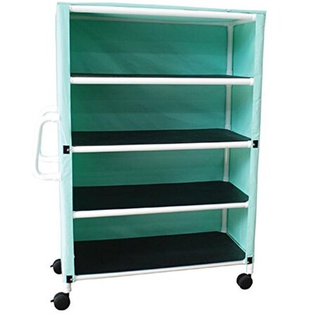 MJM International 345-4C-3 Four Shelf Cart with Cover, 500 oz Capacity, 77" Height x 52.75" Length x 20" Width, Royal Blue/Forest Green/Mauve
