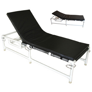 MJM-EP-COT Features: -Comes with cushion. -Manufactured of healthcare grade PVC pipe and fittings. -Multi position back rest. -Reinforced at all stress related areas. -Multiple position head rest. -Excellent for field of trauma and emergency medical care. Bed Type: -Hospital bed. Power: -Manual. Adjustability: -Head. Weight Capacity: -250 Pounds. Country of Manufacture: -United States. Mattress Included: -Yes. Finish: -White. Frame Material: -PVC. Dimensions: Bed Height: -Under 15". Overall Height - Top to Bottom: -9". Overall Width - Side to Side: -30". Overall Width - Side to Side: -26". Overall Length - Head to Foot: -80". Overall Product Weight: -49 lbs.