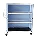 MJM International WT345T-3C Wood Tone Three Shelf Cart with Cover, 375 oz Capacity, 65" Height x 52.75" Length x 20" Width, Royal Blue/Forest Green/Mauve/Tan