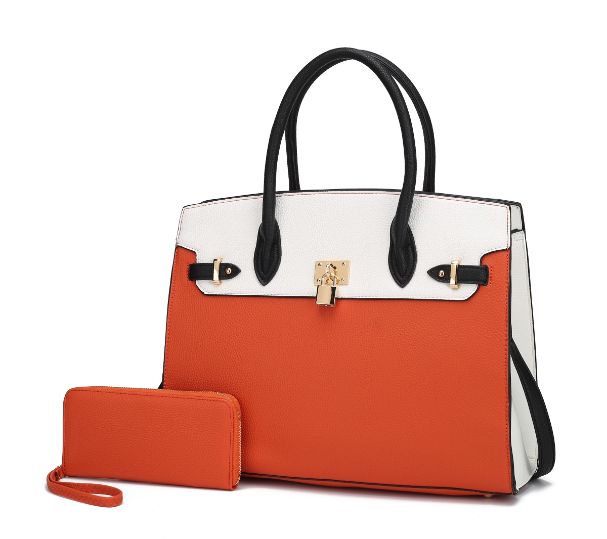 MKF Collection by Mia K. MKF-1309GS-OR Annya Satchel Bag & Wallet Set, Orange
