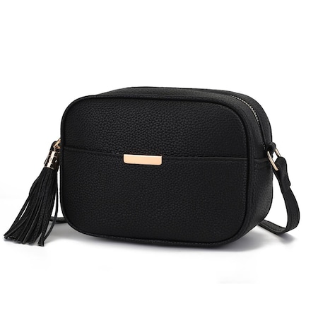 Crafted from highquality vegan grainy leather our Georgina Crossbody Bag is made for days or nights on the go With a lightly structured and compact design The Georgina Crossbody will become your everyday favorite The interior features a wall zippered pocket to keep your small belongings organized and a slip pocket at the front The Georgina Crossbody has a top zipper closure to keep your items secure It is designed with goldtone embellishments and it is finished with a tassel Features. Georgia Crossbody Bag. Adjustable Shoulder strap extends to 48 inPockets. Interior features a wall zippered pocket. Exterior features one slip pocketSpecifications. Color Black. Material Faux Leather. Measurements 55 H x 3 W x 825 L in. Weight 1 lbs