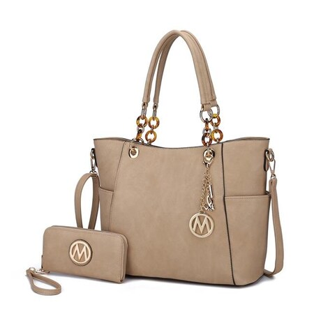 MKF Collection by Mia K MKF-X3337NTP Bonita Checker Tote & Wallet Set, Beige
