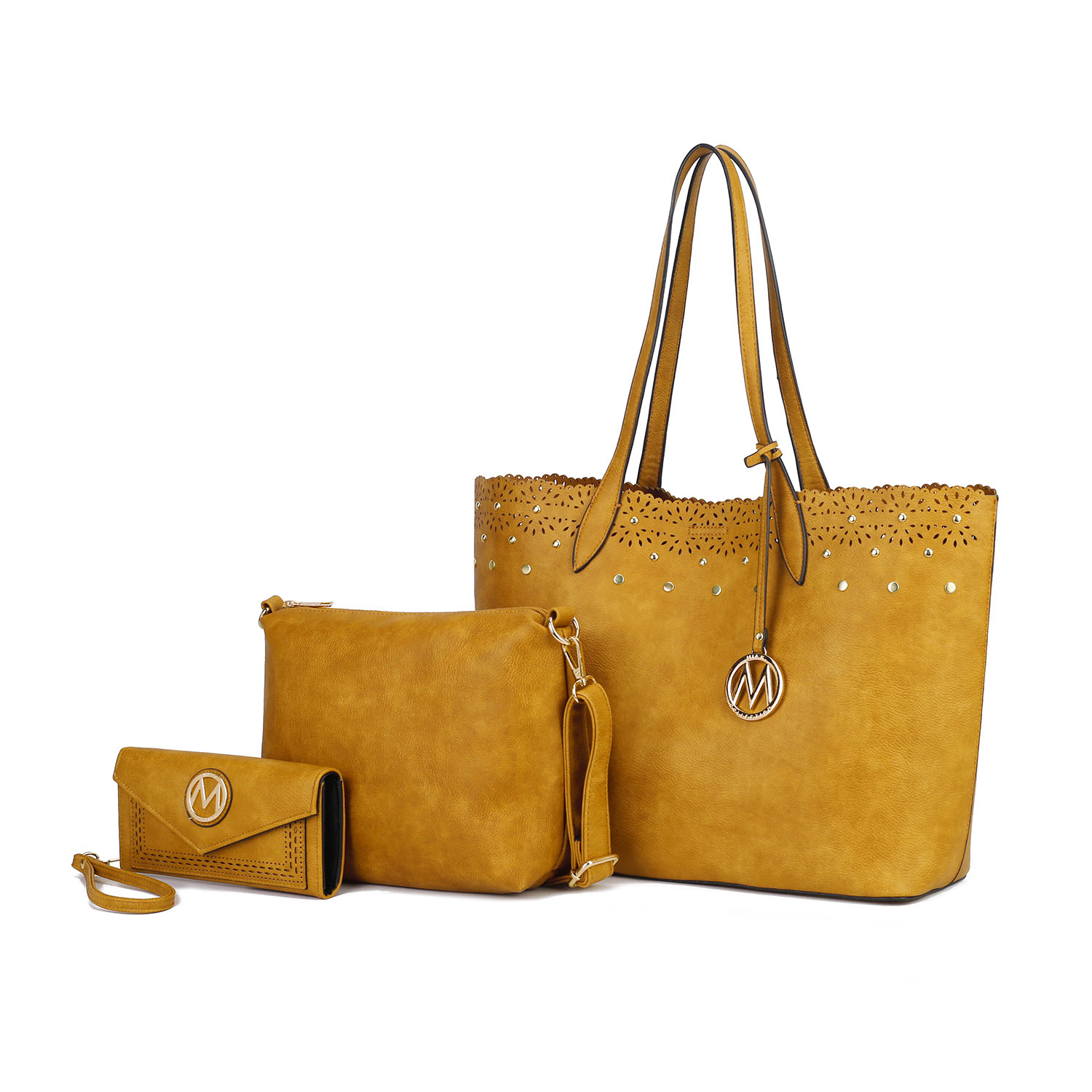 MKF Collection by Mia K. MKF-X375W-YL Mariahna Shopper Tote Bag with Crossbody & Wallet, Yellow - 3 Piece