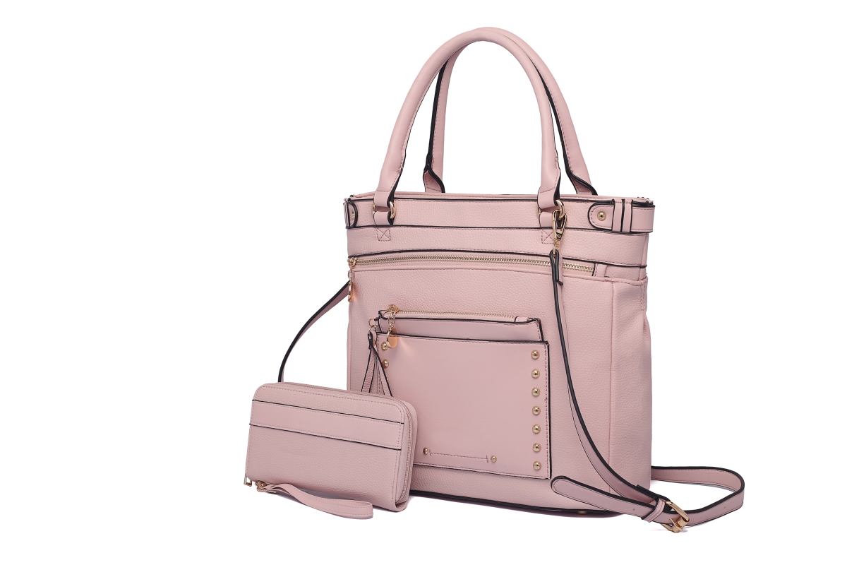 MKF Collection by Mia K. MKF-X417PK Cabell Tote Bag with Wristlet Pouch & Wallet, Pink