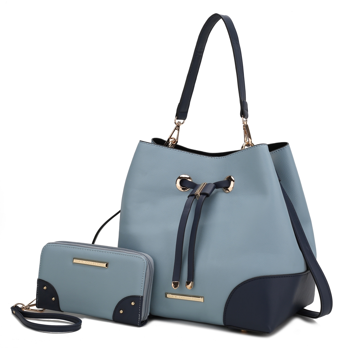 MKF Collection by Mia K. MKF-X621DM-NV Color Block Bella Bucket & Wallet Set, Denim & Navy