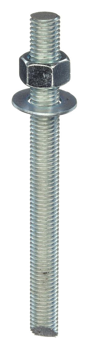 'Stud Assembly, Zinc Plated, Carbon Steel, Anchor Dia. 5/8 In., Rod Dia. 27/40 In., Thread Size 27/40 In., Thread Depth 7-1/2 In., Length 7-1/2 In., Drill Size 27/40 In., Min. Embedment 5, Min. Hole Depth 5, Threaded Rod/stud Assembly, For Use With Adhesive, For Use With 5/8 Spin In Capsule, Meets/Exceeds A307 Standards, Includes Nut and Washer, Package Quantity 10'