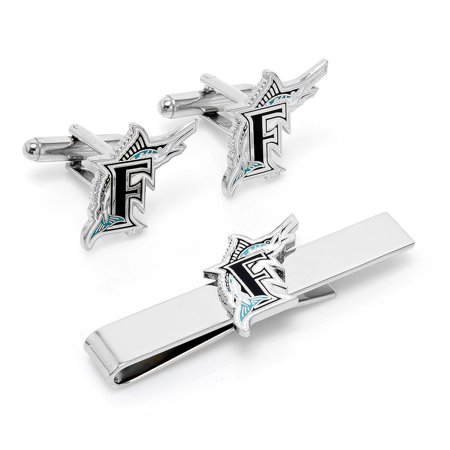 <ul> <li>Cufflinks Approximately 3/4"</li> <li>Officially licensed MLB merchandise. Great for any baseball fan!</li> <li>Enamel finish cufflinks on a plated backing with a bullet back closure. Sliding tie bar.</li> <li>Perfect as a holiday, anniversary, or birthday present!</li> <li>Comes in a collectible logo crafted Gift Box!</li> </ul> <br /> <br />The gift combination for the executive sports fan. By combining the officially licensed Florida Marlins cufflinks and matching tie bar, we have eliminated the worry over whether the gift you give will be used. Wear the beautifully enameled set in conjunction or on their own. Either way, represent your team loyalty with subtle elegance. Packaged so nicely, all you need to add is a bow.