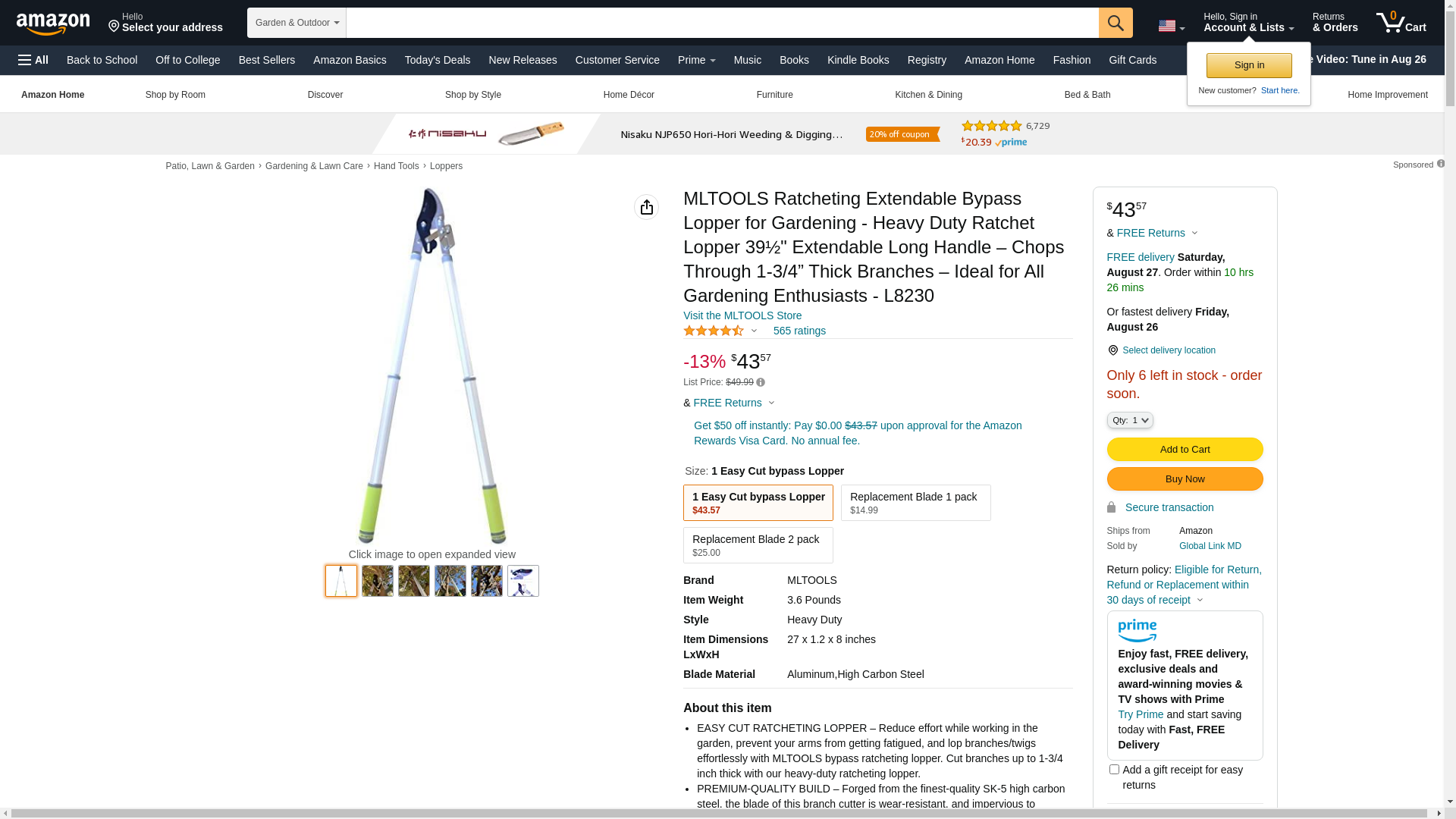 MLTOOLS L8230 Ratcheting hand Lopper have SK-5 High Carbon Steel blade with unbeatable ratcheting mechanism. Extendable Length can be set at ANY POSITION between 27” and 39-1/2” --- Usable length is 25-1/2” to 37-1/2 (cutting point to the end of handle). They offer 1-3/4 inch diameter cutting capacity. Its ratcheting mechanism lightens your gardening job by at least 5 times comparing with regular loppers. Light-weighted but sturdy aluminum extendable handles with non-slip grips. Now give yourself a chance to try their cutting power, you will find with our ratcheting hand pruners, you save so much time and energy- not just doing pruning but also enjoying your lovely gardens!