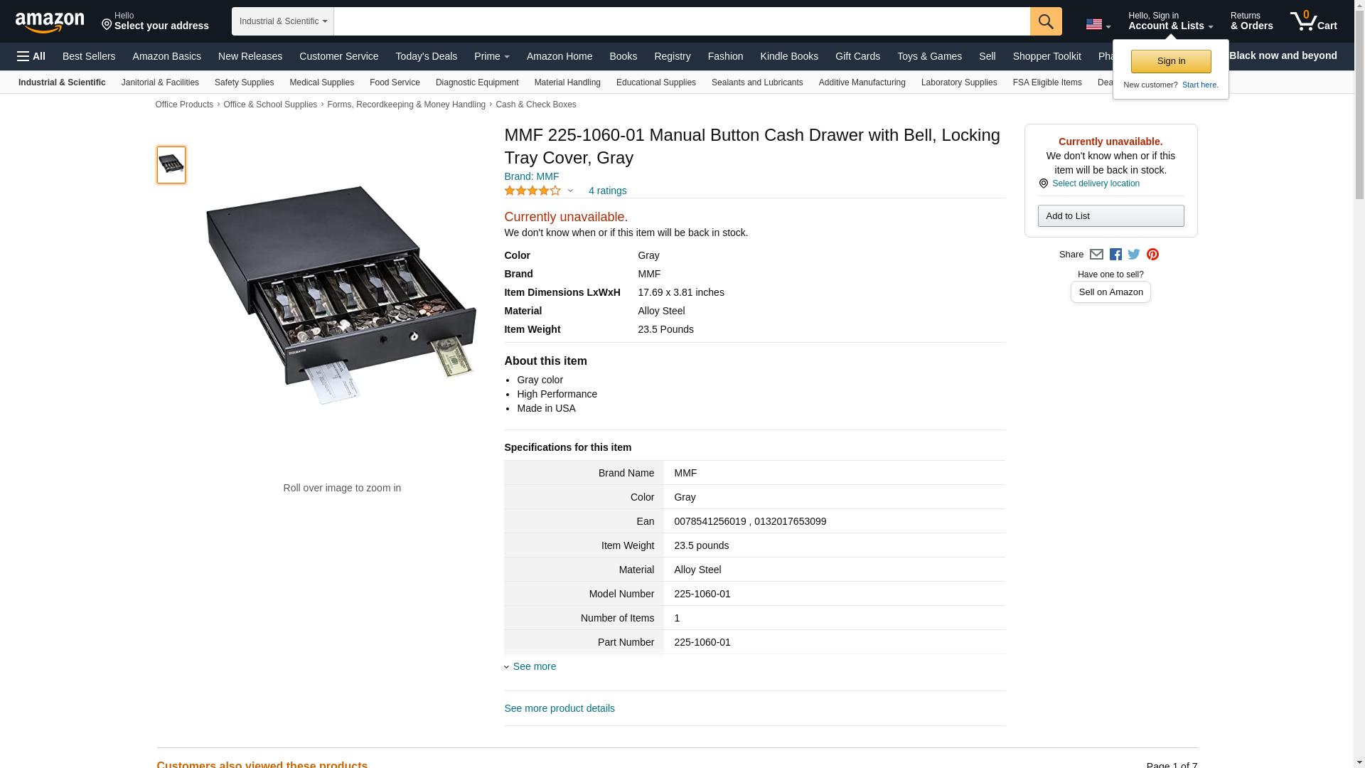 MMF 225-1060-01 Manual Button Cash Drawer with Bell, Locking Tray Cover, Gray