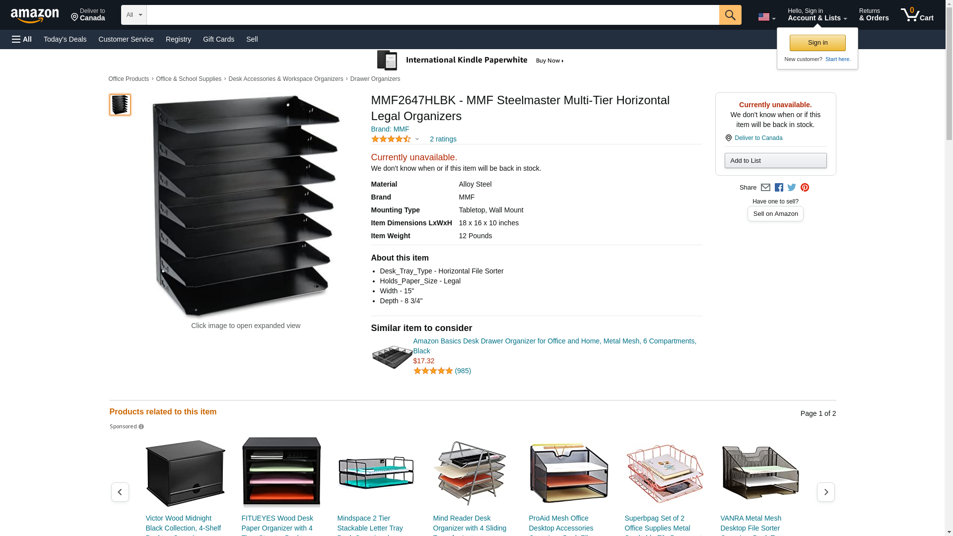 | Feature | MMF Horizontal Organizer, 7-Tier, 15"x8-3/4"x17-3/4", Black (2647HLBK) |