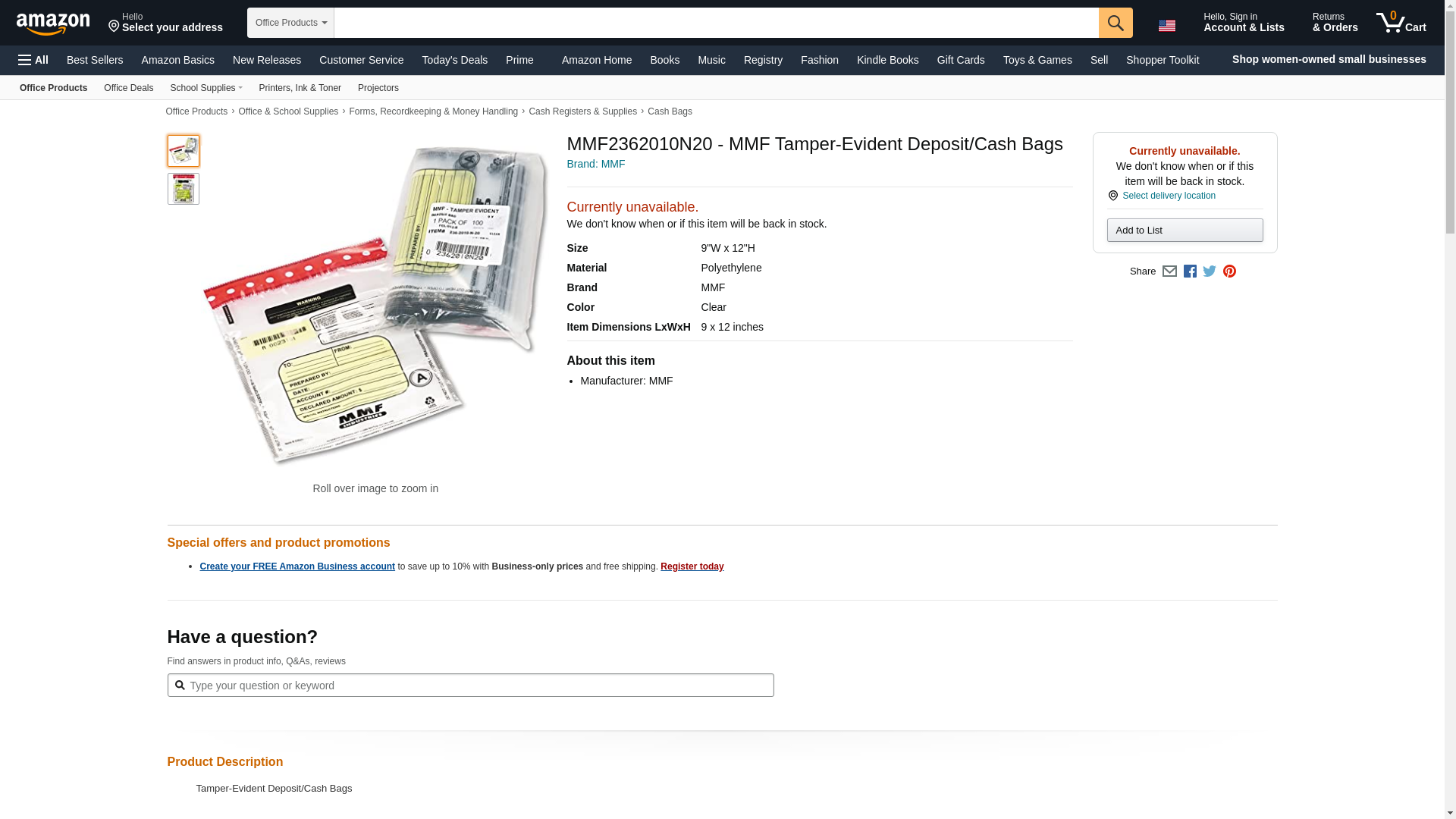 MMF2362010N20 - MMF Tamper-Evident Deposit Bag