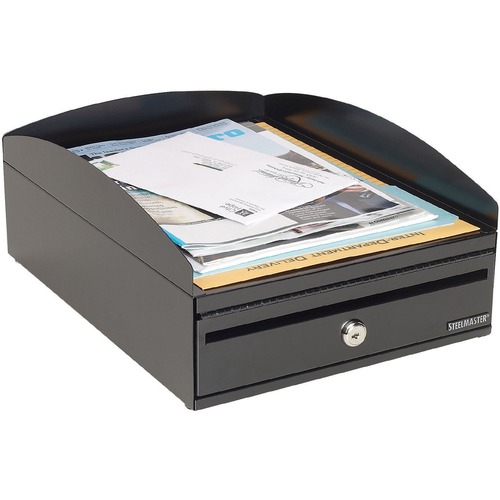 Steelmaster Inbox Desk Tray, Single Tier w/Locking Box, Black