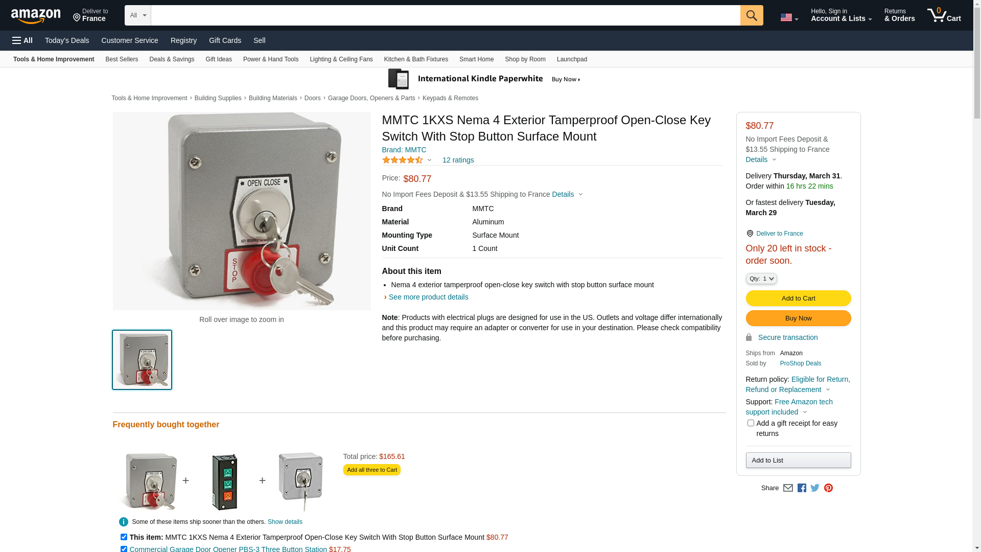 MMTC 1KXS Nema 4 Exterior Open-Close Key Switch with Stop Button