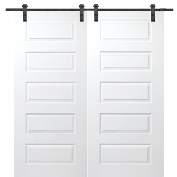 MMI DOOR Primed Rockport 72" X 80" Kit With Black Barn Door Hardware | HD Supply