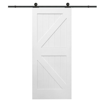 MMI DOOR Primed K-Plank 36" X 84" Kit With Black Barn Door Hardware | HD Supply
